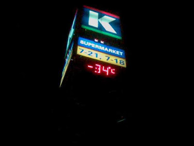 K-supermarketin joulukuusi jouluna 2005. Vuonna 2006 siinä ei ollut joulukuusta ja vuonna 2009 siinä ei ole tuota rakennusta.